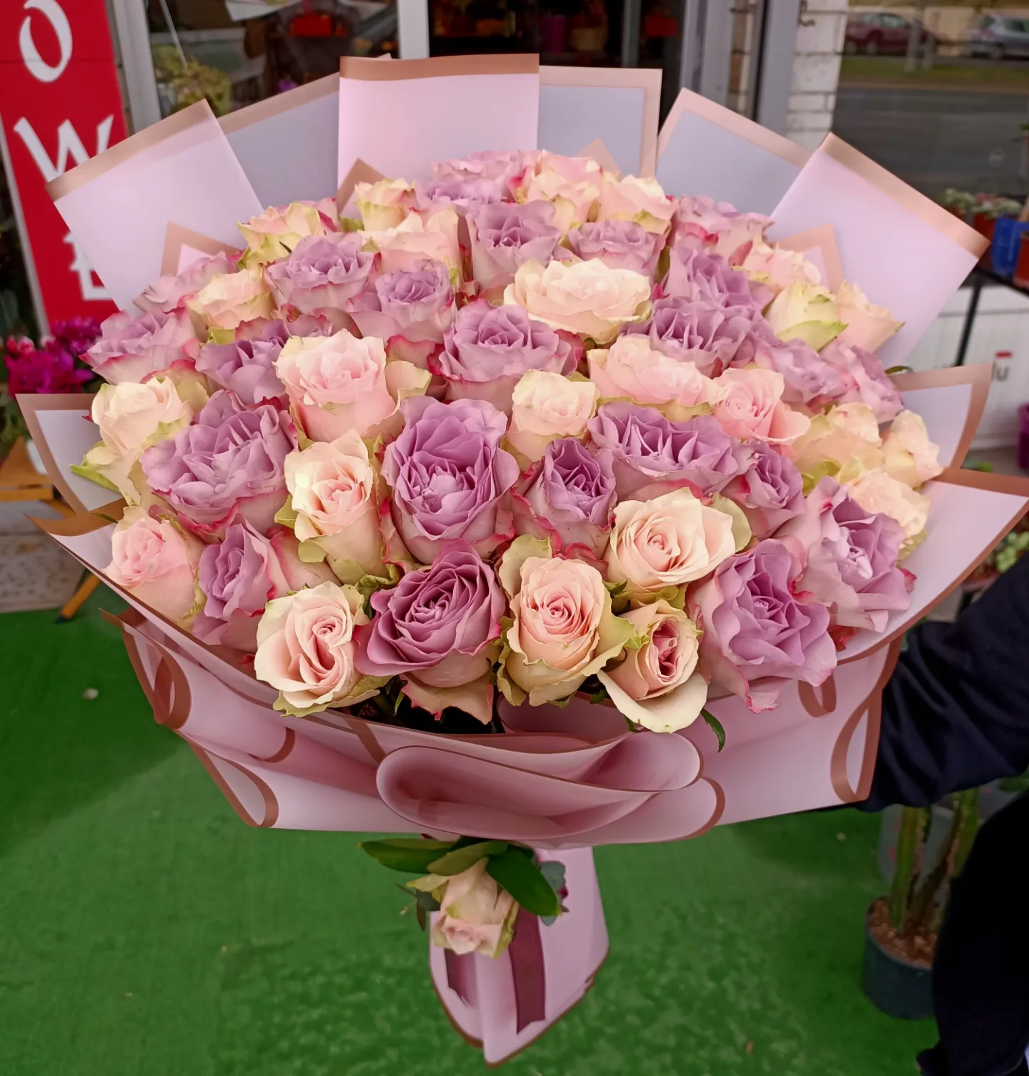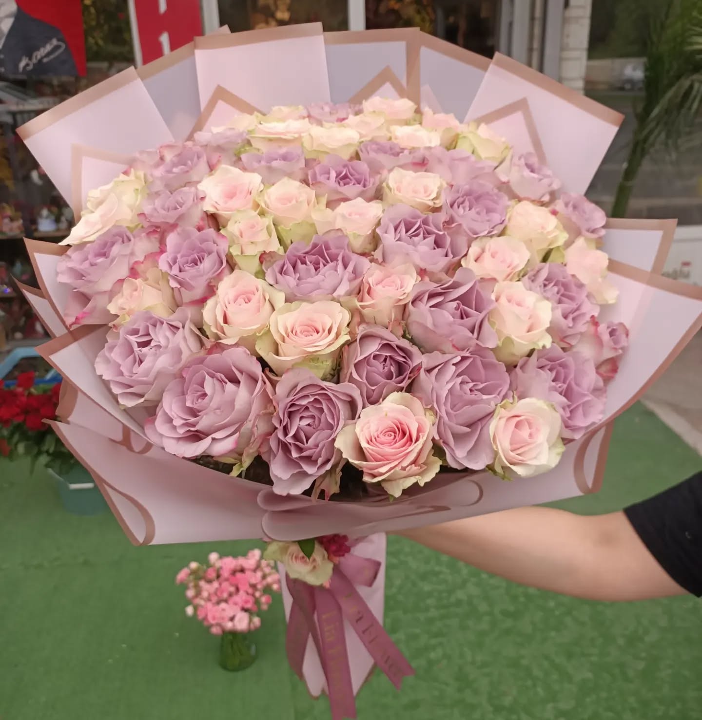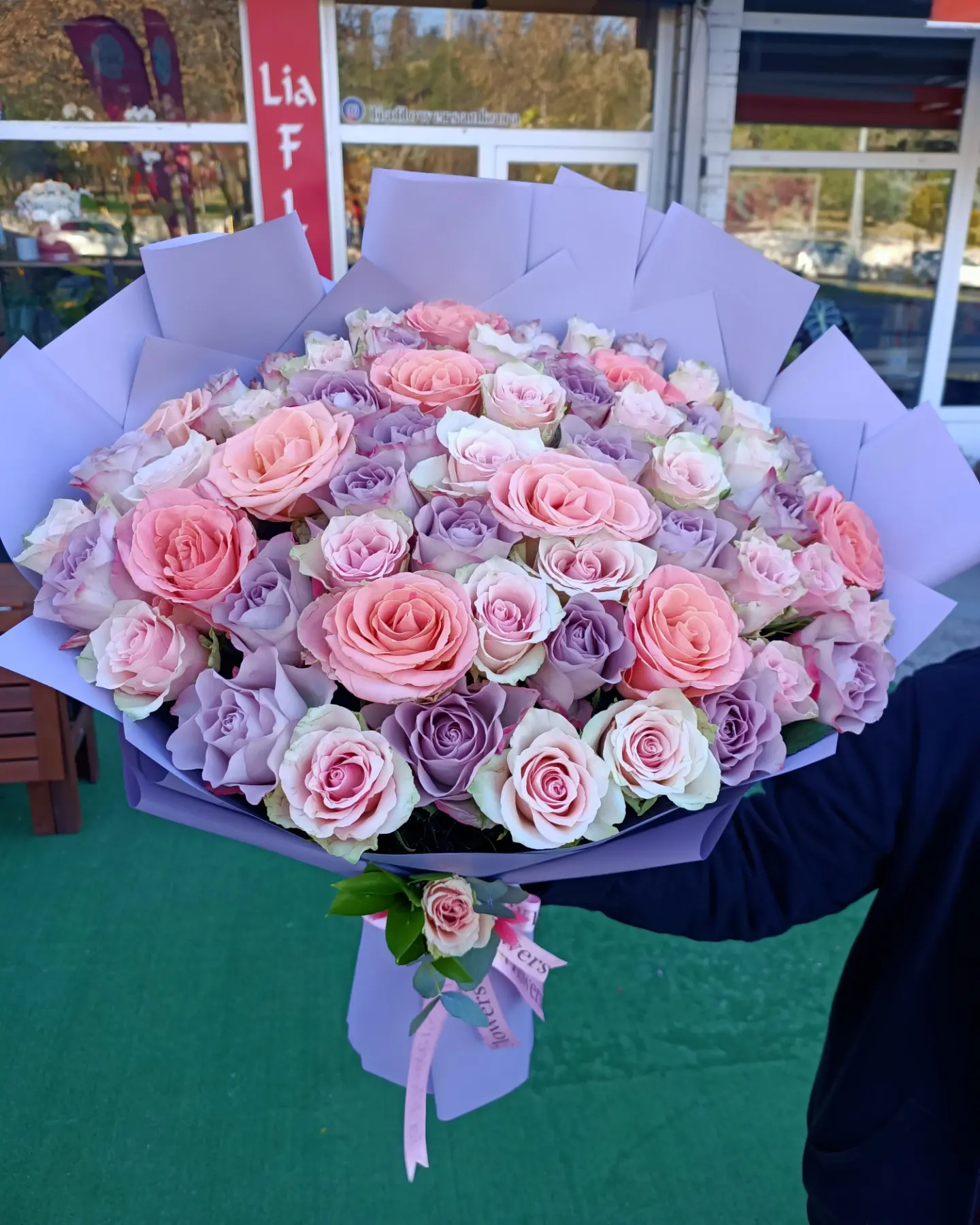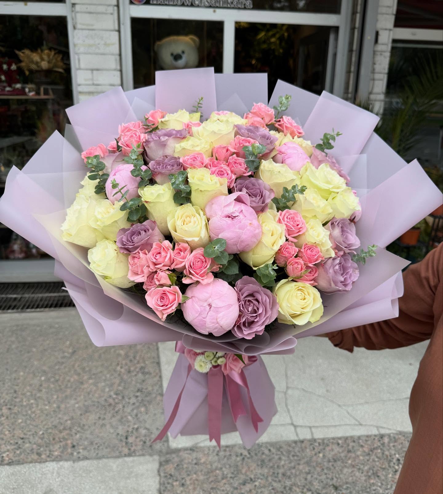 Lila ve açık pembe gül Buketi