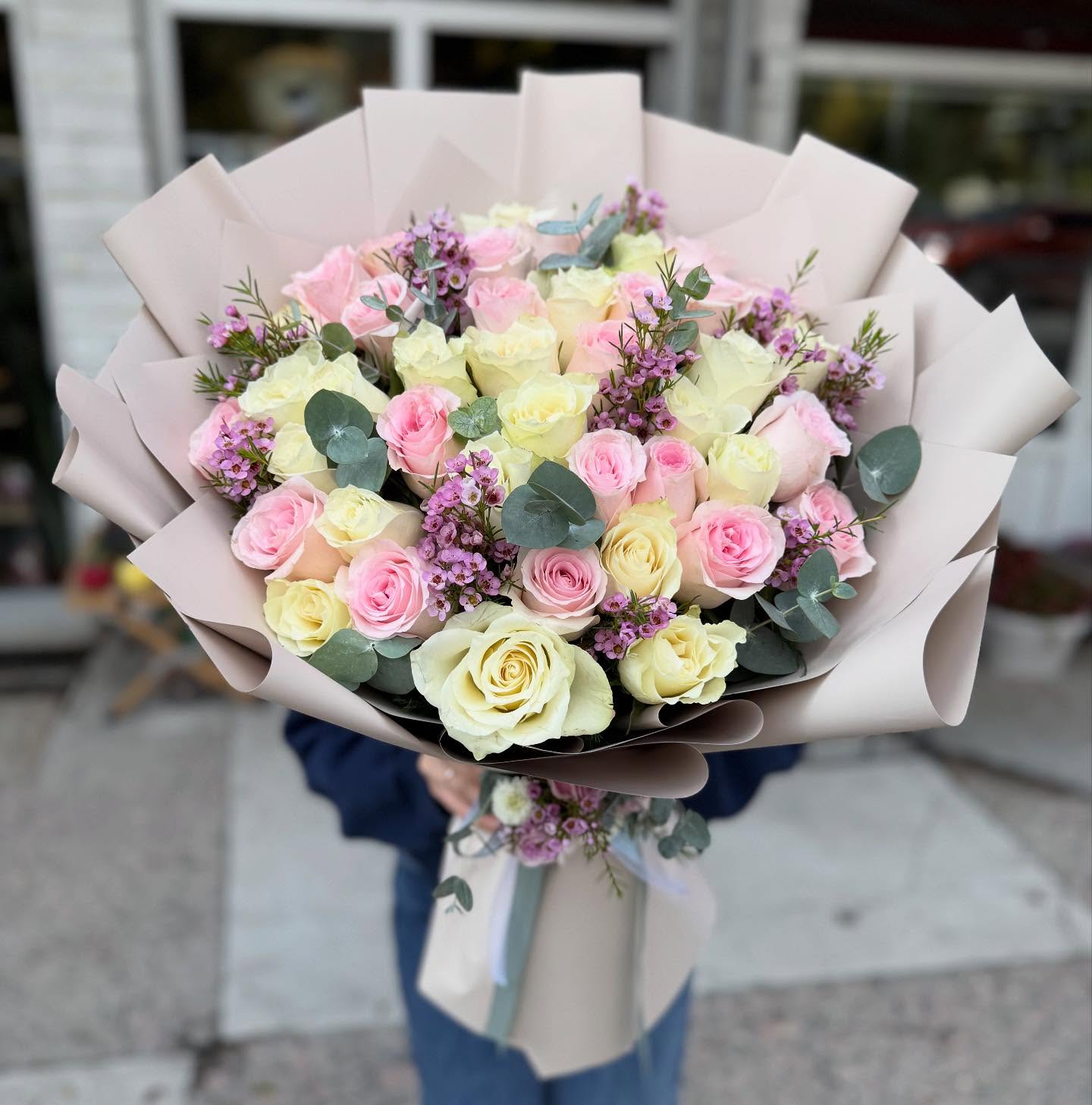 Pembe & beyaz 41 adet Gül buketi