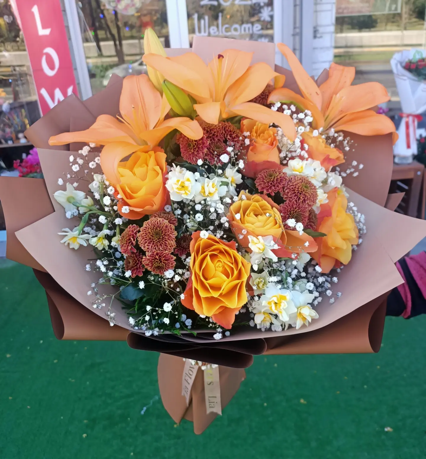 Kasımpatı ve lilyum buketi