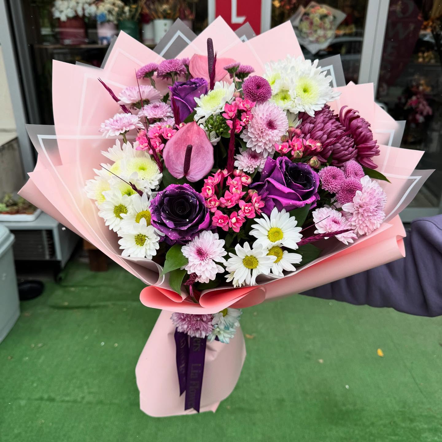 Mor Gül & Antoryum Buketi
