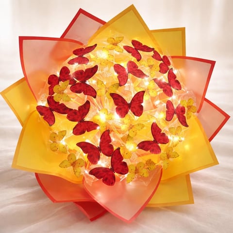 Sarı Kırmızı Kelebekli LED Işıklı Buket