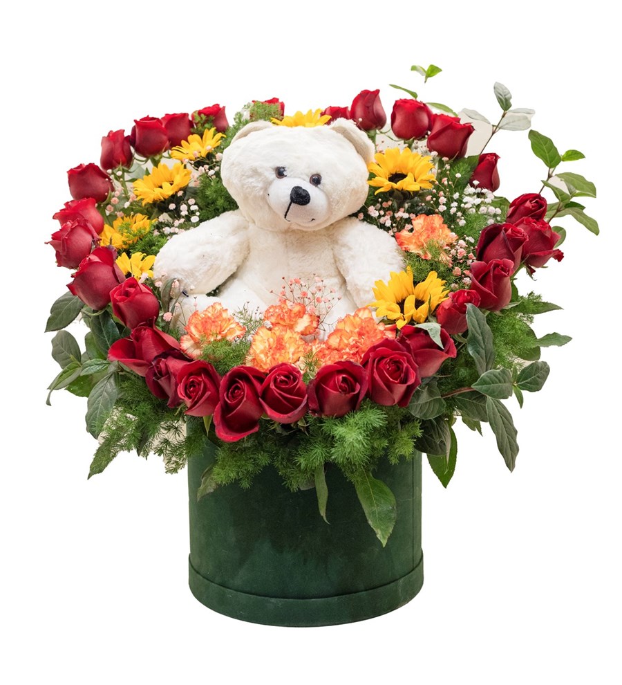 Kutuda Ayıcıklı Kırmızı Gül