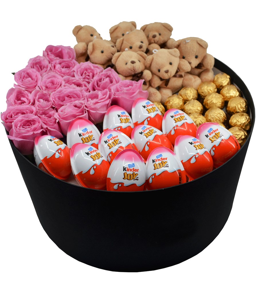 Ayıcıklı Çikolatalı Pembe Gül