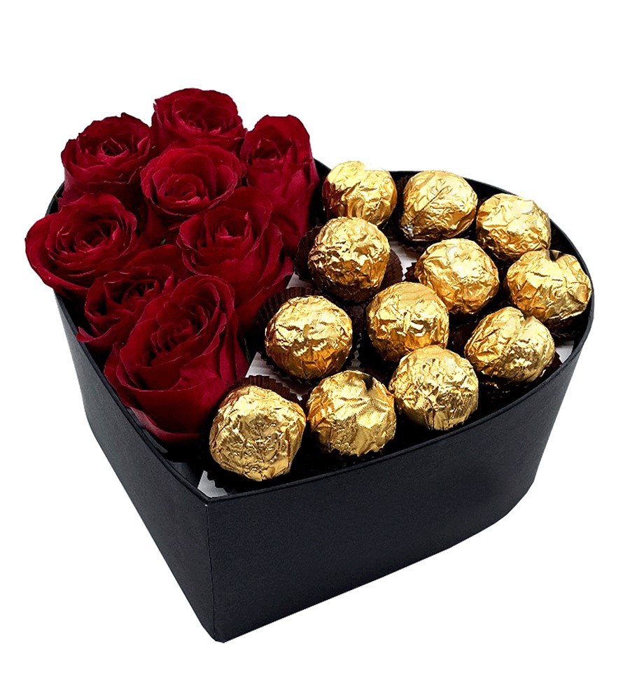 Kalpli Siyah Kutuda Gold Çikolatalı Kırmızı Gül