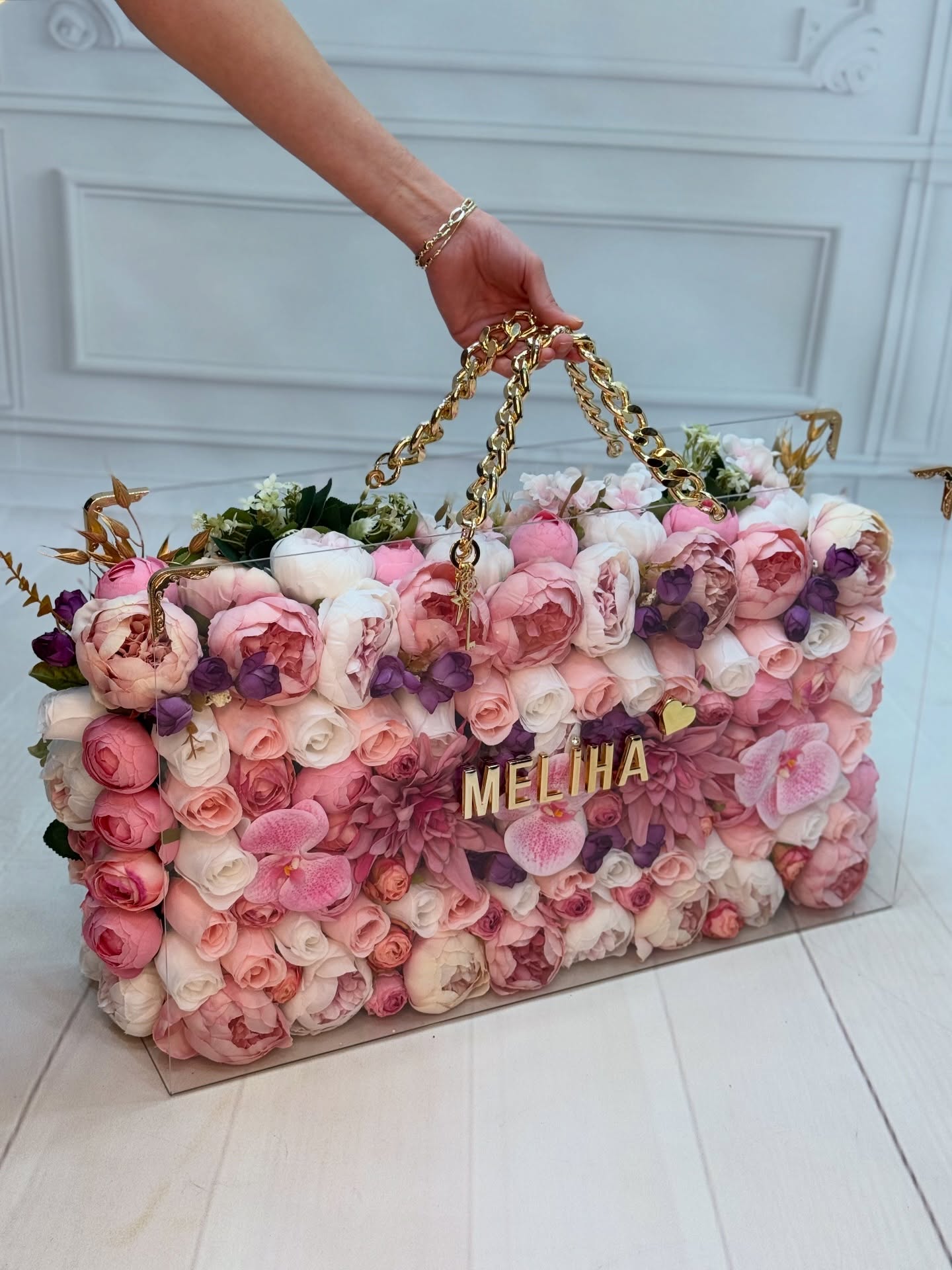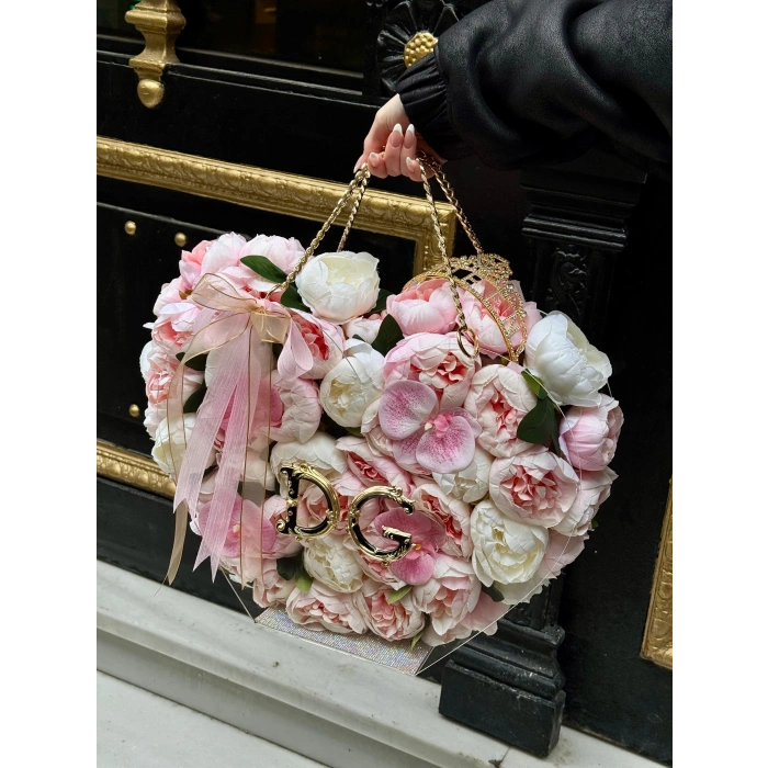 Premium Kalp Çantada Şakayıklar