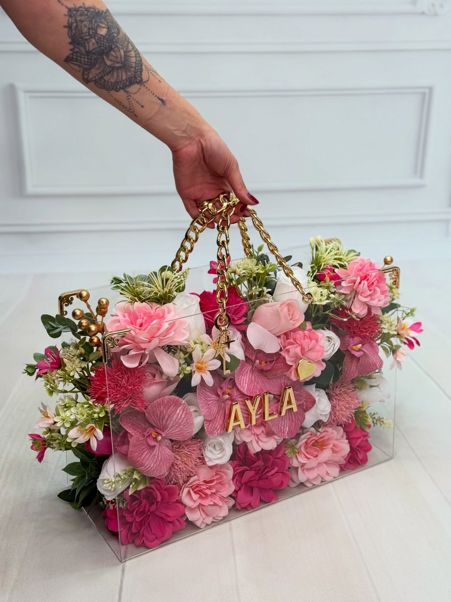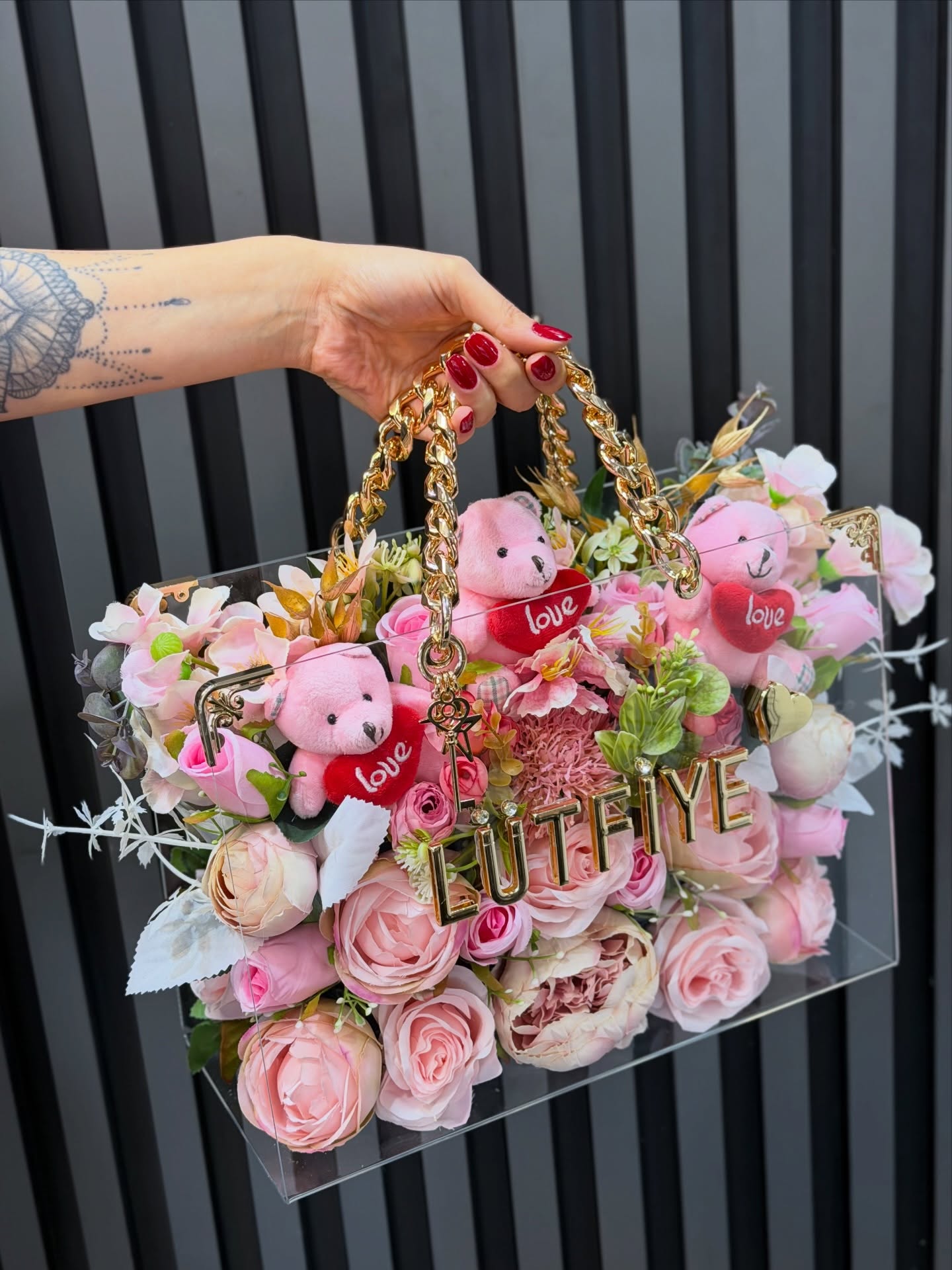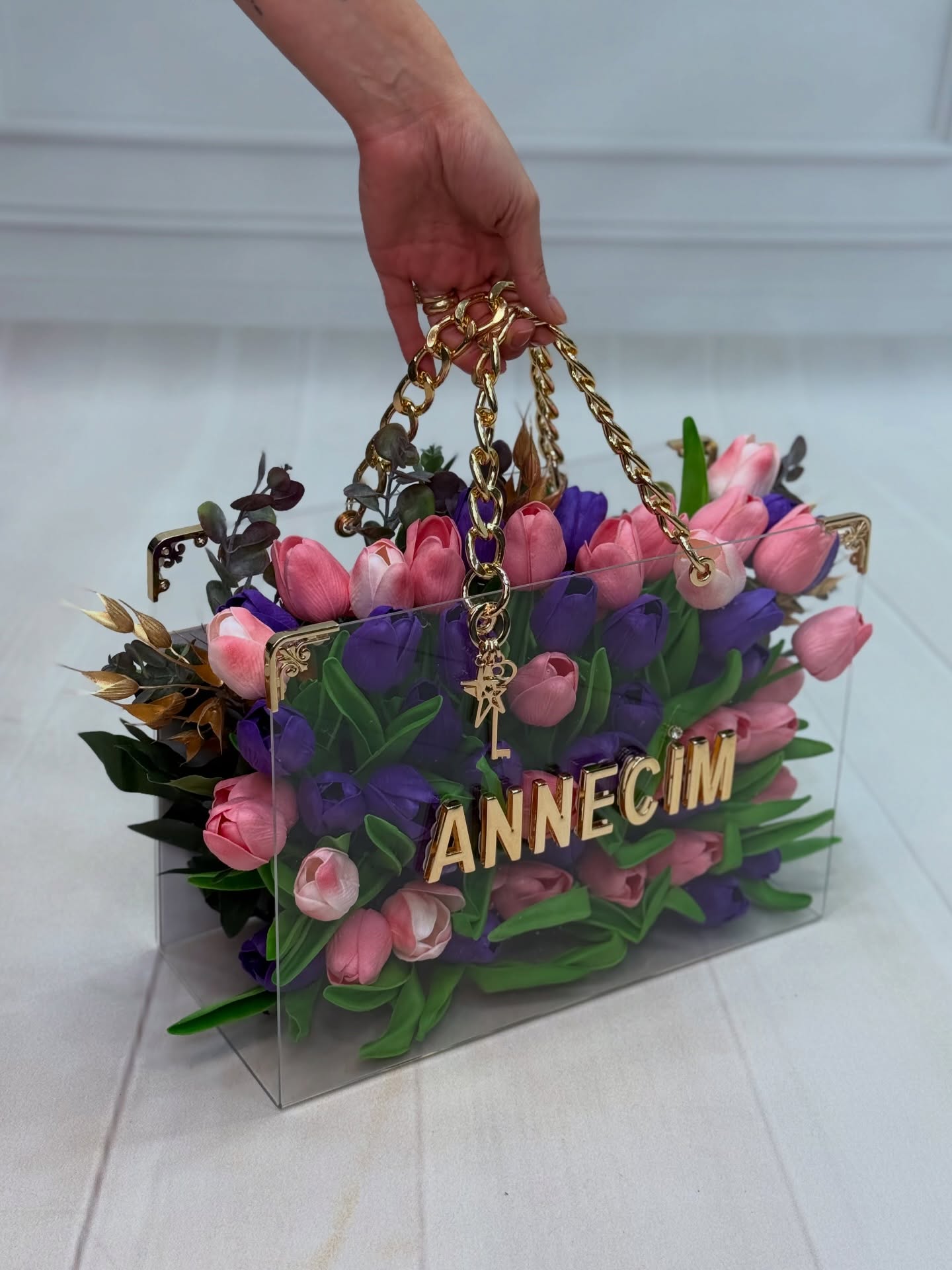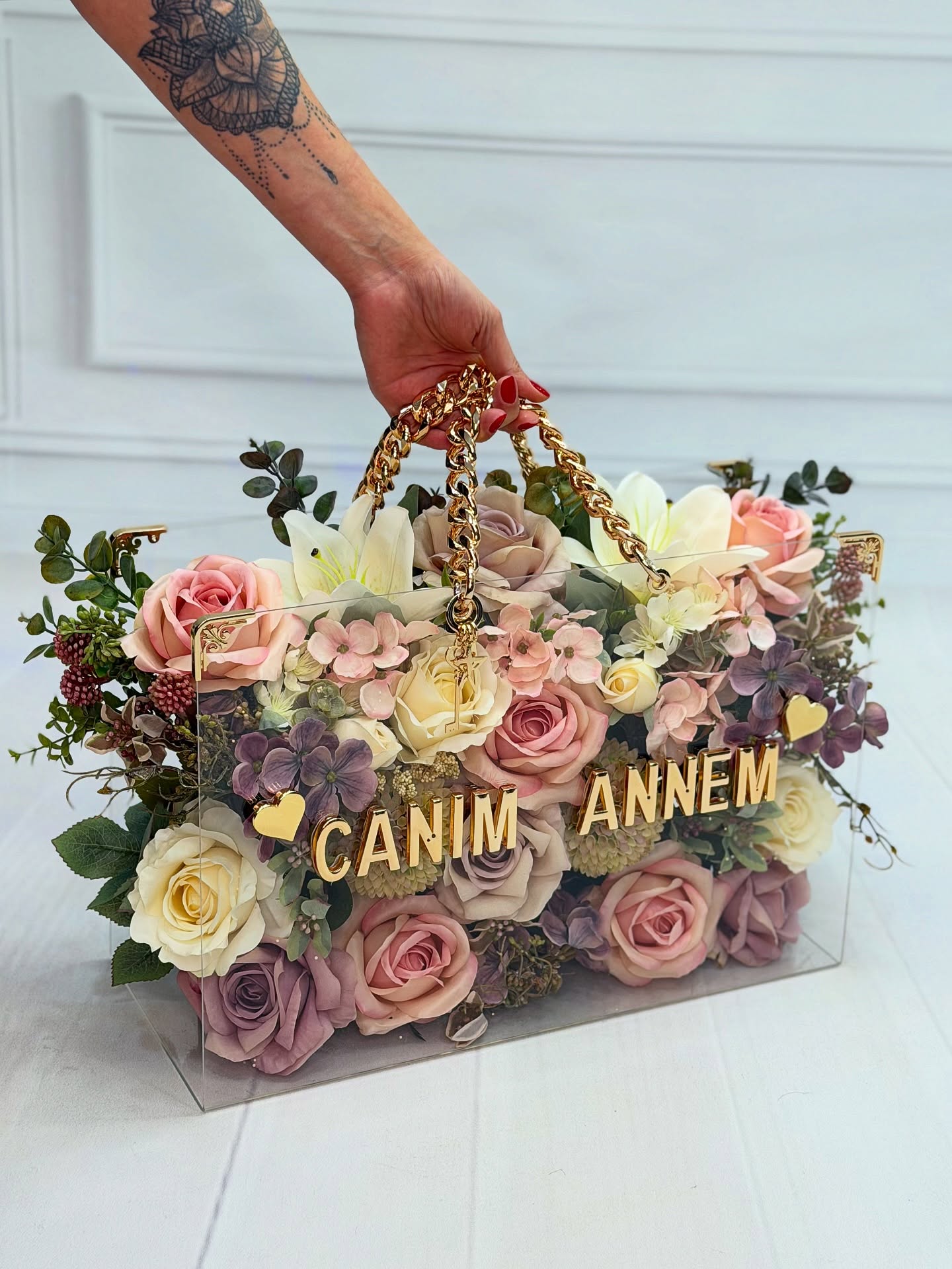 Bilgi: Tasarım çiçek kategorisindeki ürünlerin üzerine yazılacak olan isim ve harf düzenlemeleri, sipariş formundaki "Alıcı Adı" bilgisine göre kişiye özel olarak düzenlenecektir.